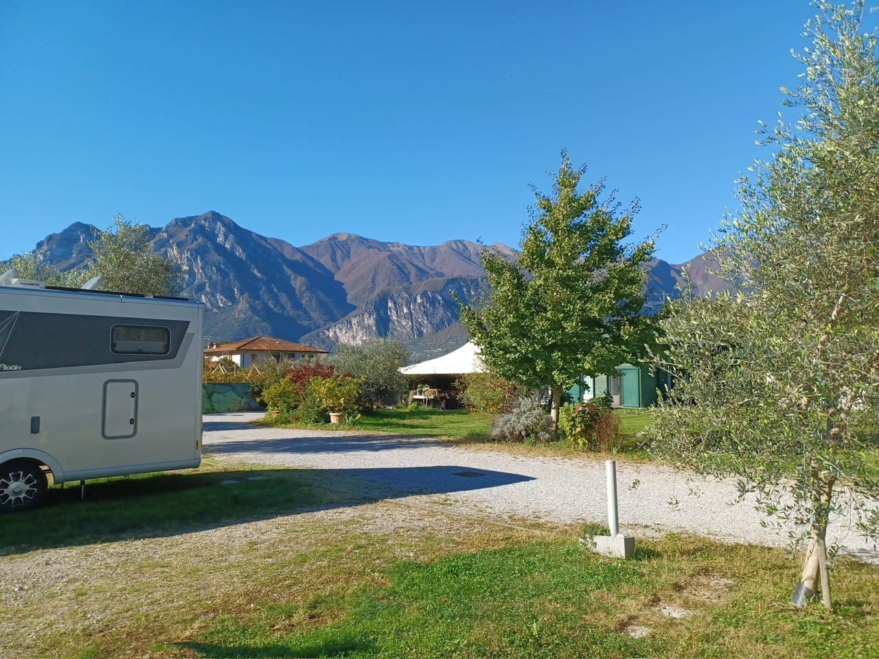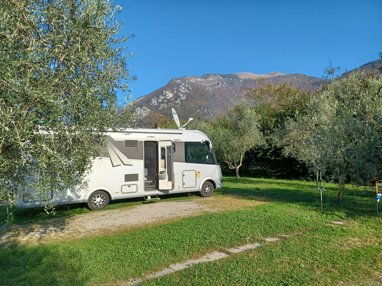 Sehr schöner Campingplatz gelegen zwischen vielen Olivenbäumen. Ein kleiner gemütlicher Campingplatz vielleicht für ca. 20 Fahrzeuge. Die Aussicht auf die Berge war einfach unheimlich schön und einladend.