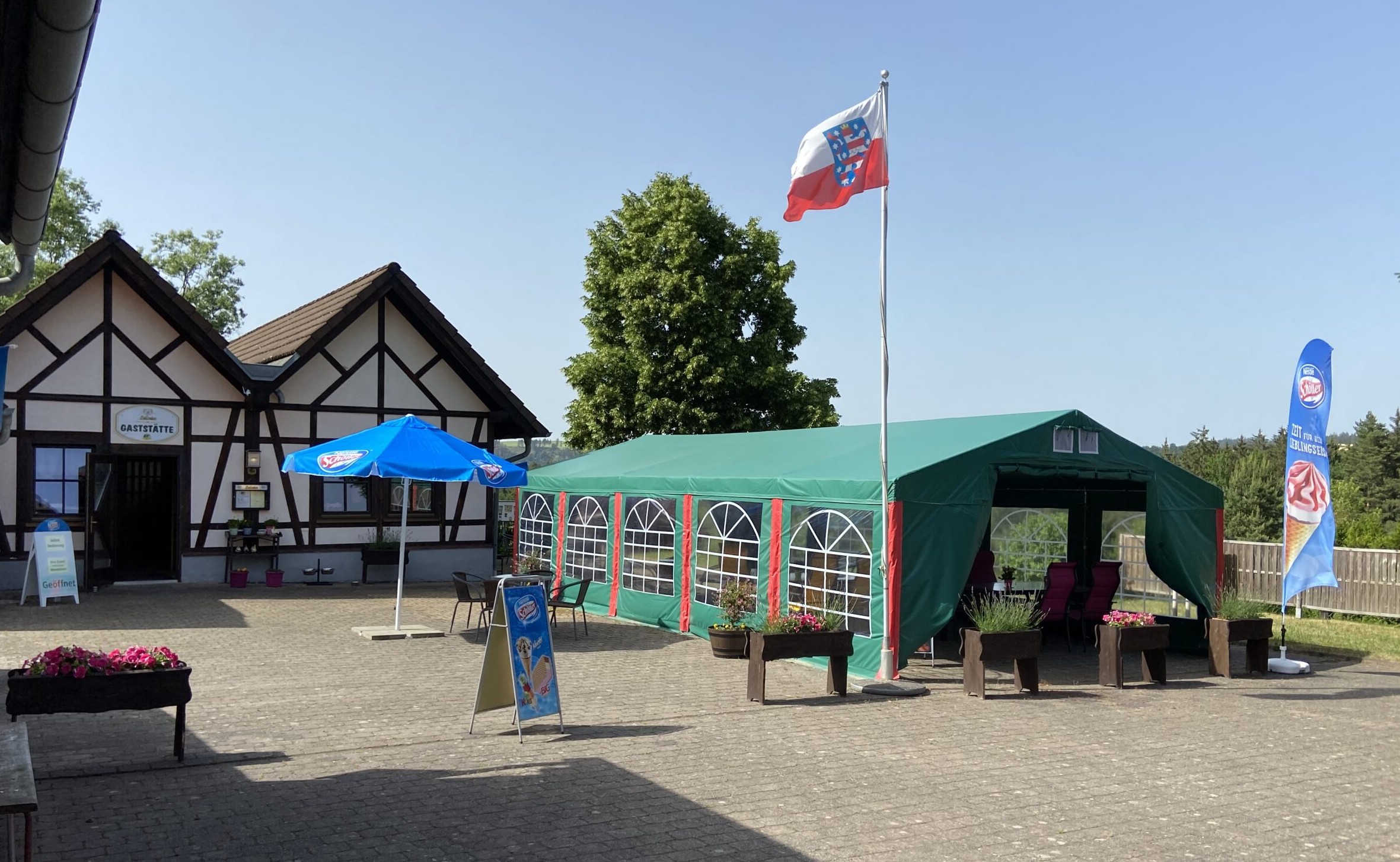 Camping Thüringer Wald ist ein Campingplatz in Drognitz, Thüringen, der direkt im Wald liegt. Der Platz ist terrassenförmig angelegt und bietet Stellplätze mit Schatten, ohne Schatten sowie im Halbschatten – so ist für jeden Geschmack etwas dabei. Er verfügt über einen Spielplatz und ein Sportgelände. Auch Hunde sind auf dem Platz erlaubt. Wer nicht selbst kochen möchte, kann das Restaurant auf dem Campingplatz besuchen. Am Morgen bekommt man vor Ort frisches Brot. Zu Fuß gelangt man in etwa 10 Minuten durch den Wald zum See, wo man ebenfalls Brötchen kaufen kann. Wir waren im Mai/Juni dort. In dieser Zeit war der Platz schön ruhig und nicht überfüllt, allerdings liegt er auch ziemlich abseits.
